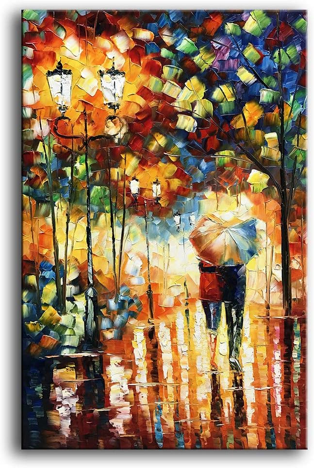 Amazon.com: Tree Oil Painting Colorful Palette Knife Modern Abstract Artwork Rainy Night Canvas Street Landscape Stretched Wall Art - Romantic Couple 50X60Cm/19.6X23.6In, BH: Paintings