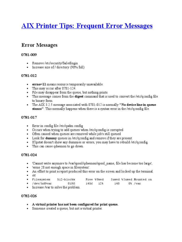 Aix Printer Tips Frequent Error Messages Network Socket Transmission Control Protocol